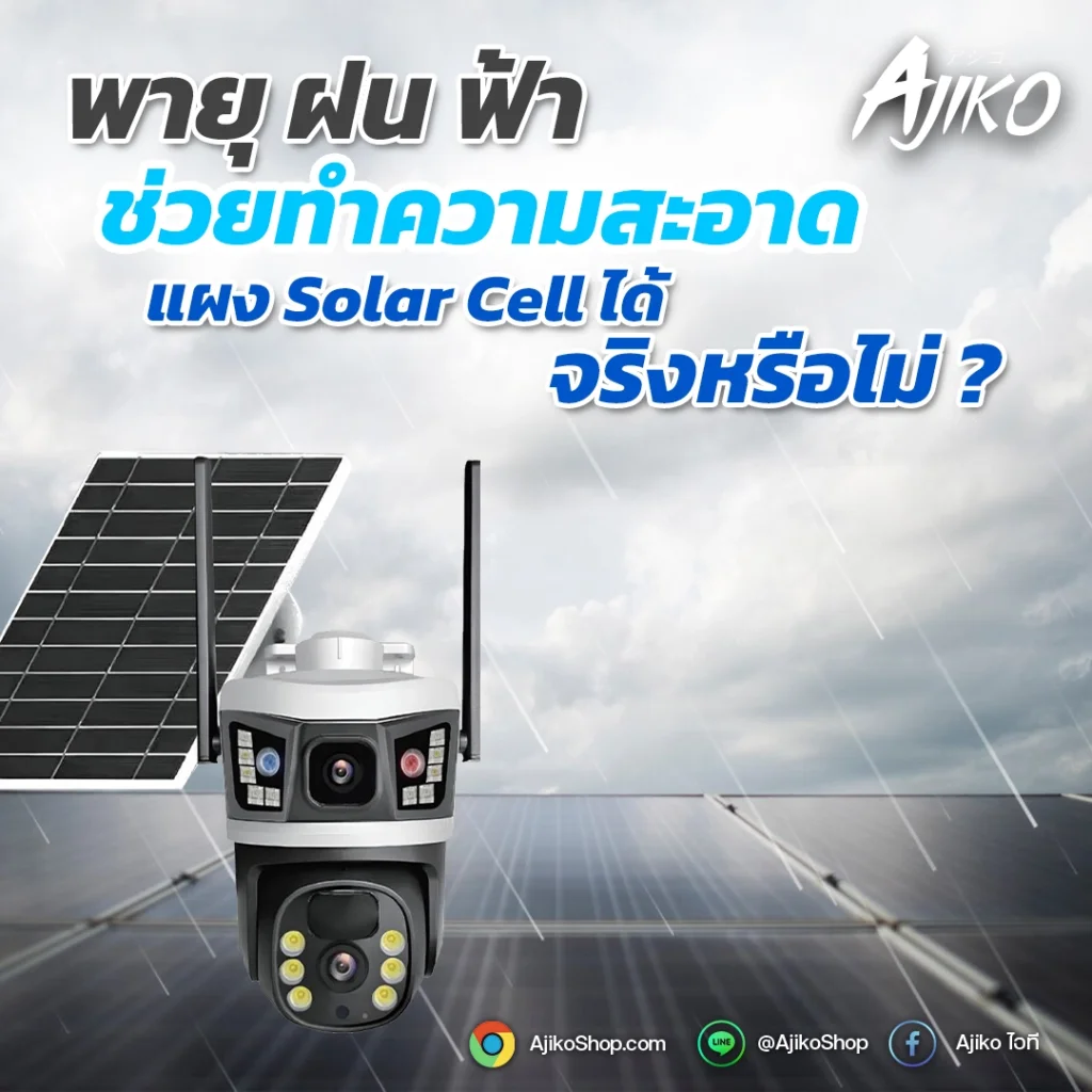 แนวคิดที่ว่าการที่ฝนตกหนักนั้นอาจเป็นเรื่องที่ดีต่อ กล้องโซล่าเซลล์ ของเรานะ เพราะฝนที่ตกลงมานั้นสามารถช่วยทำความสะอาดแผงโซล่าเซลล์ของกล้องวงจรปิดโซล่าเซลล์ได้ แต่บอกเลยว่าจริงๆก็ถือว่าไม่ได้ผิดซะทีเดียว ฝนนั้นสามารถช่วยทำความสะอาดได้จริง แต่ได้เพียงเล็กน้องเท่านั้น ฝุ่น สิ่งสกปรกเล็กๆ ได้ในระดับหนึ่ง แต่ไม่สามารถทำความสะอาดสิ่งสกปรกที่เกาะแน่นได้ทั้งหมด ดังนั้นแล้วนอกจากการเลือกกล้องและพื้นที่ติดตั้งให้เหมาะสมแล้วก็ควรหมั่นดูแลอุปกรณ์และทำความสะอาดอย่างสม่ำเสมอเพื่อประสิทธิภาพสูงสุดในระยะยาวของการใช้งานกล้องวงจรปิดโซล่าเซลล์ของเราด้วยค่ะ