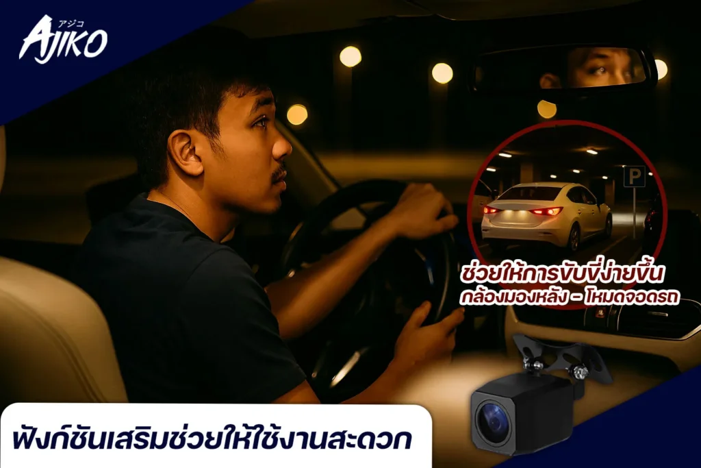 - กล้องมองหลัง: การใช้กล้องติดรถยนต์ กล้องหน้า+กล้องหลัง จะช่วยให้เก็บภาพได้ทั้งสองทิศทางเห็นทั้งด้านหน้า และ ด้านหลังของรถ เพิ่มความปลอดภัยรอบคัน